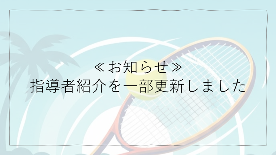 【2026年1月27日】指導者紹介を一部更新しました お知らせ 2026.01.272026.02.15 以下のリンクから指導者紹介をご覧いただけます。また、当ウェブサイトのトップページ内のリンクや、「メニュー」からも閲覧可能となっております。 指導者紹介当クラブは、学生が指導するソフトテニスクラブです。会計処理を除く運営・指導は、全て学生のメンバーで行っております。 指導者紹介においては、個人情報保護のため一部情報を割愛しております。 責任者・コーチ 岡本 佑 Okamoto Tasuku... なお、当クラブは複数の指導者で構成する予定で、現在掲載中の者以外にも指導者がいます。他の指導者については、詳しいことが決まり次第ご紹介する予定です。 画像の無断転載はご遠慮ください。皆様のご理解ご協力をお願い致します。